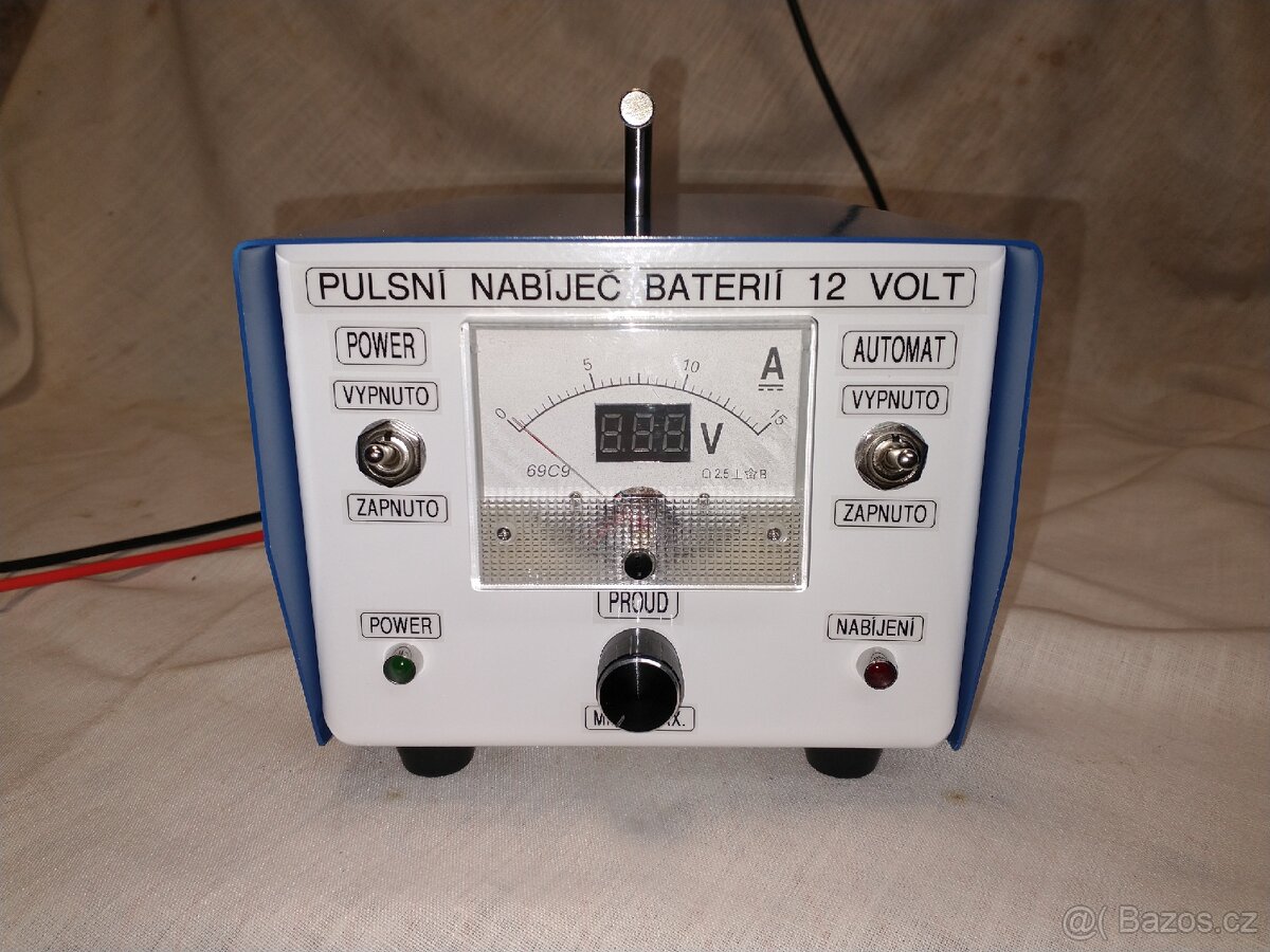 Jedná se o nový nabíječ vlastní výroby vhodný jak na kyselinové,tak na gelové baterie 12 bot.Má plynulou regulaci proudu 0 až 15 amp., ochranu proti zkratu a přepólování baterie.Dále má funkci automat,která při zapnutí bude přerušovat nabíjení po dosažení 14,7 volt a bude udržovat baterií v nabitém stavu.