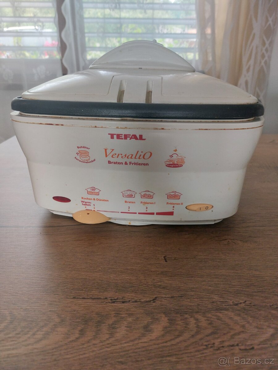 Na fritování, vaření, pečení. Nepoškozený vnitřní povrch nádoby, vyjímatelná, lze dát do myčky. Funkční, pouze zažloutlý vnější povrch.