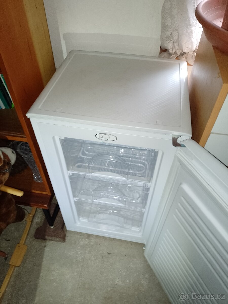 Prodám tříšuplíkový mrazák. Mrazák je v pěkném stavu, plně funkční.