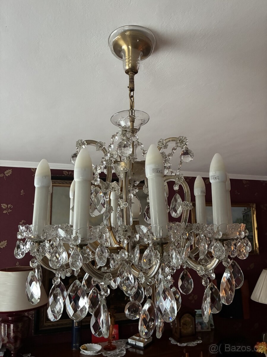 Lustry jsou kompletní, nic nechybí ani není prasklé. Všechny závěsy původní. Funkční elektroinstalace na žárovky. E14 („svíčky“).