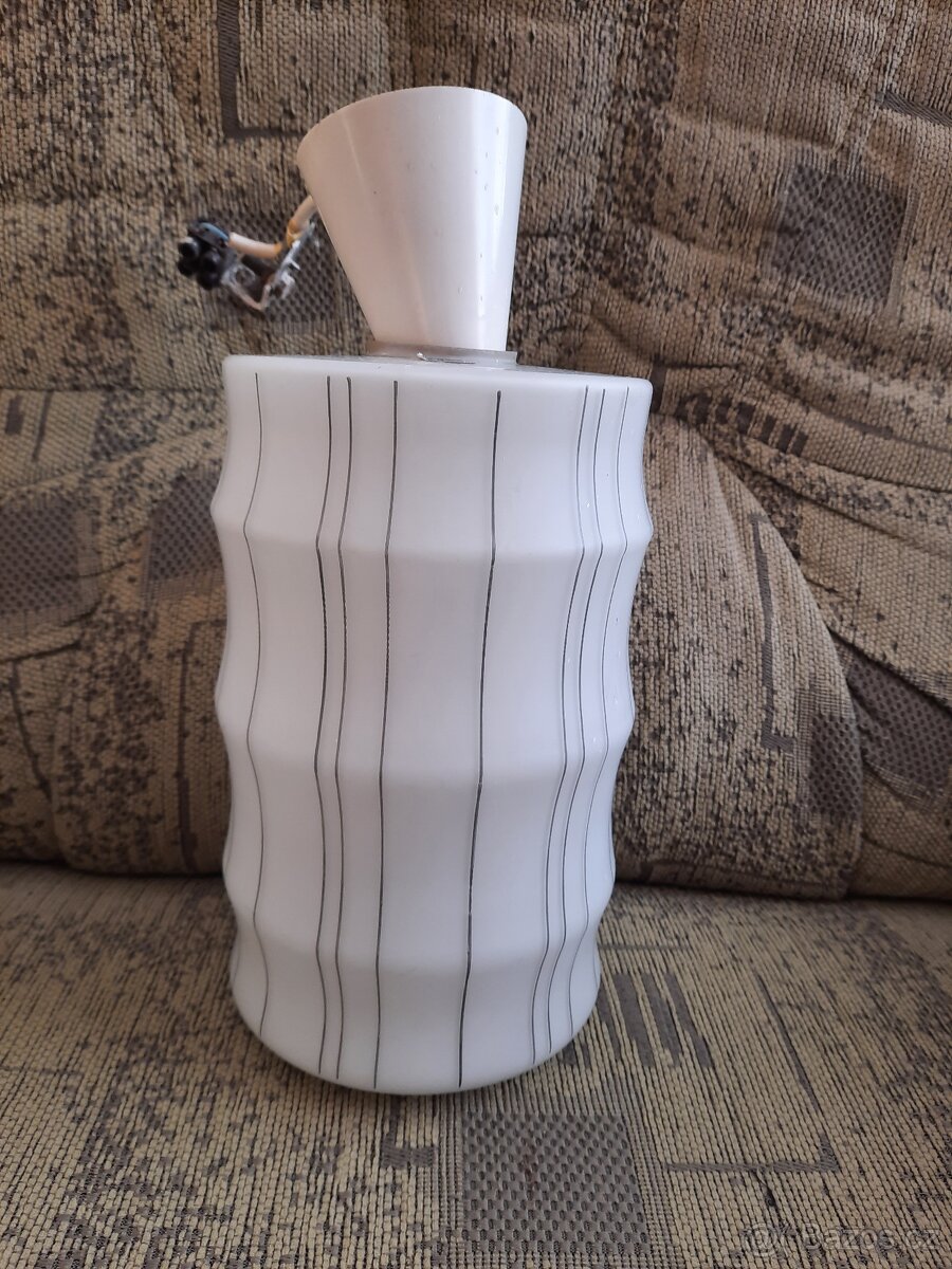 Retro lustr - [7.1. 2026]Modernistické světlo v původním, velmi dobrém stavu. Kvádrový tvar z masivního litého skla. Dvě objímky na žárovky s běžným závitem.