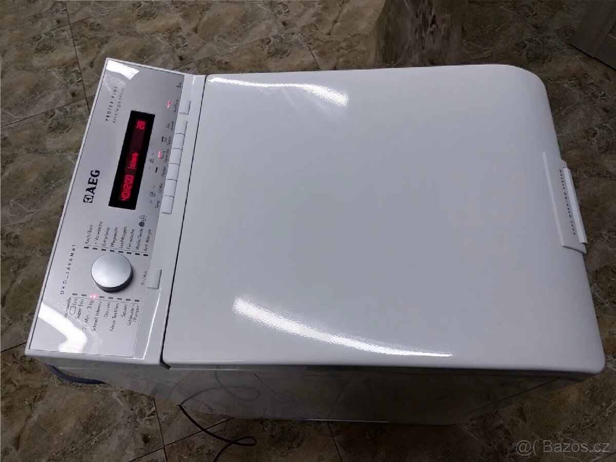 úzká pěkná velmi úsporná A++ moderní pračka AEG – PROTEX s velkým displejem. Původně 11990 Kč. Na 7 kg prádla, maximum otáček 1300 (1300/1000/800/400-0), energetická třída A++, třída pracího výkonu A. Velký display, šířka jen 40cm. Jednoduché elektronické ovládání programů - jen 1 ovladač. Velký plnicí otvor prádla. Program snadné žehlení, rychlý program, extra volba otáček, velký elektronický LED display - ukazatel zbývajícího času a 23hod předvolba startu, stav praní ukazují diody. Tlačítko ÚSPORA ČASU pro rychlé praní, Aqua Control, programy SENSITIV (zejména pro děti a dospělé s citlivou pokožkou). Superrychlý program, zvláštní program Ruční praní, program snadné žehlení, Skvrny, automatická Fuzzy logic regulace spotřeby: spotřeba vody a energie dle náplně, automatická Fuzzy regulace programu pro odstřeďování obzvlášť řídce tkaného prádla. Výborně pere, kvalitní, značková, výborný stav. Prodejní cena jen 3990 Kč. Doprava možná i mimo Prahu