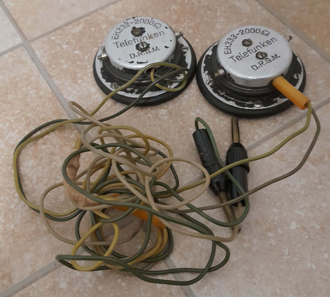 Historická retro sluchátka D.R.G.M. Telefunken EH333-2000Ω - nálezový stav; bez hlavového mostu; funkčnost netestována. Původně navržené společností TELEFUNKEN ve 30. letech minulého století pro použití německou armádou. Tento a podobné typy byly využívané i během 2. světové války => vhodné asi zejména pro sběratele. Cena dohodou (nabídněte).