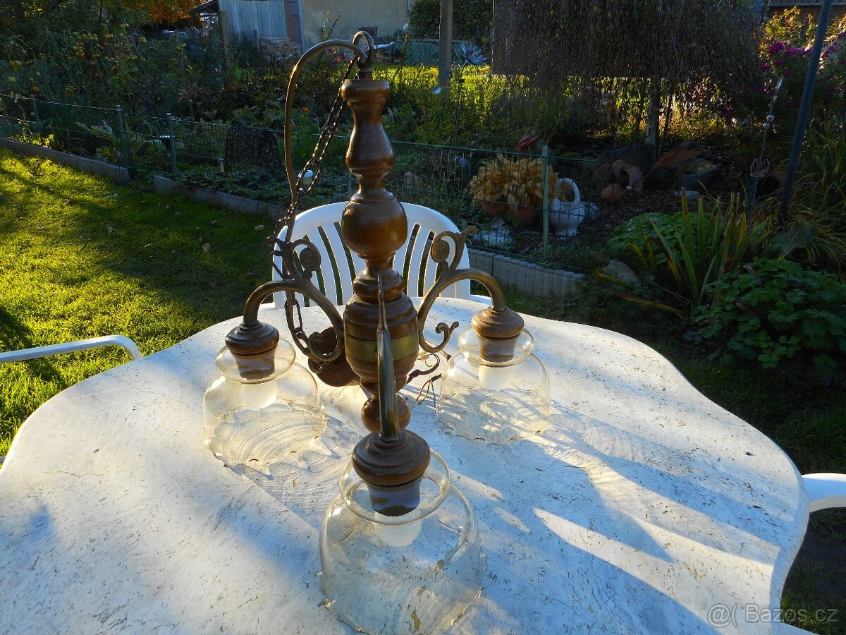 PRODÁM STARŠÍ MOC PĚKNÝ MOSAZNÝ LUSTR .VYROBEN ZE SILNÉ MASIVNÍ MOSAZI V KOMBYNACI S DUBOVÝM DŘEVEM. ZAVĚŠEN NA KOVOVÉM ŘETĚZU.TOP STAV.