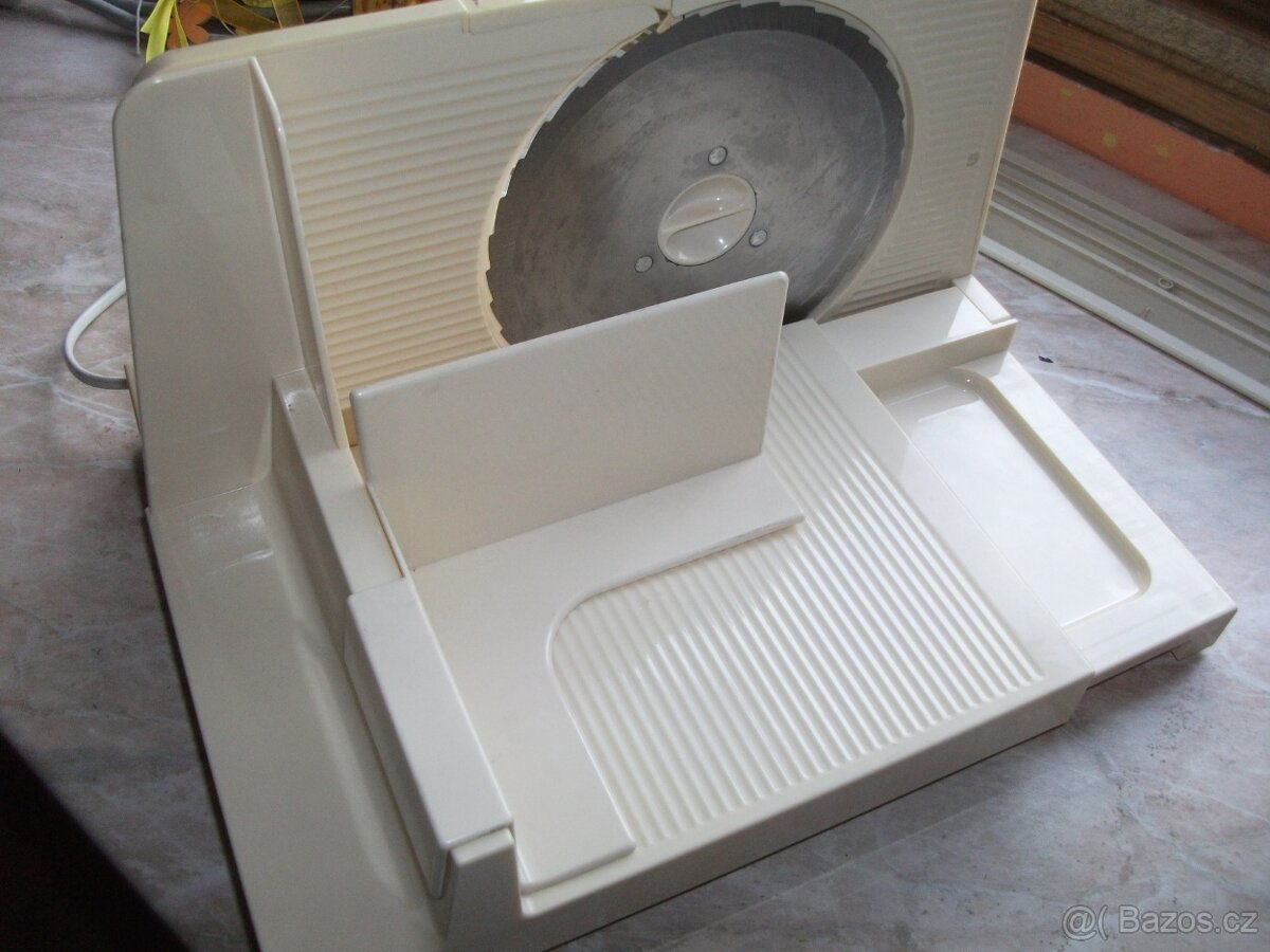 Nářezák 0-15mm, 200 W, 2x kulatý nůž 19 cm - [7.2. 2026]K dispozici 1x úplně nový a 1x vybalený a odzkoušený (provozovaný cca týden) - kompletní, v pořádku, jen do provozovny potřebujeme silnější.