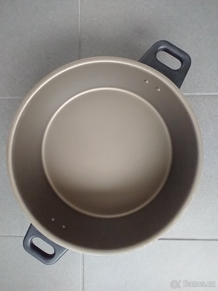 Příslušenství k remosce. Používaná na pečení chleba na střídačku s druhou mísou do remosky. Jinak je vyrobena z hliníku (pro dobrý přenos tepla z víka na mísu) a potažena nepřilnavým povrchem Teflon® Classic.