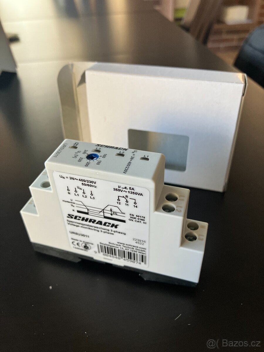 Prodám nové napěťové relé Schrack UR5U3011,úroveň hlídání 160-240V AC v trojfázových sítí,hysterze pevně nastavena.Nákupní cena 2150,-Kč.Prodám za 850,-Kč vč.dopravy Zásilkovna.