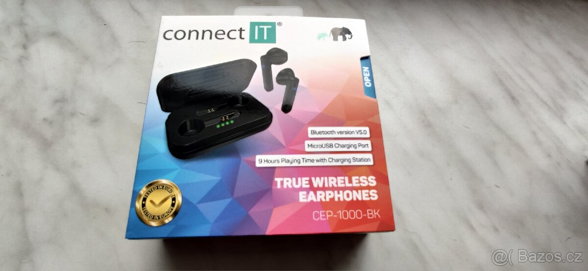 powerbankou až 9 hodin) Doba hovoru až 3 hodiny (s nabíjecí powerbankou až 9 hodin) Pohotovostní režim až 90 hodin Doba potřebná k nabití sluchátek cca 2 hodiny Doba potřebná k nabití powerbanky cca 2,5 hodiny Integrovaný mikrofon pro telefonní hovory a ovládání hlasových asistentů Siri a Google Nabíjení pomocí nabíjecího pouzdra (powerbanky) s micro USB nabíjecím kabelem (součást dodávky) Frekvenční rozsah: 20 Hz - 20 000 Hz Impedance: 32 Ohm (±15%) Citlivost sluchátek: 100 dB (±5 dB) Citlivost mikrofonu: -40 dB (±2 dB) Příkon sluchátek: 2 × 2 mW Průměr měničů sluchátek: 10 mm Pracovní frekvence bezdrátového přenosu: 2,4 - 2,485 GHz Integrovaná dobíjecí Li-Ion baterie ve sluchátkách (3,7 V/30 mAh) Integrovaná dobíjecí Li-Ion baterie v nabíjecím pouzdře (3,7 V/300 mAh) Vstupní nabíjecí konektor nabíjecího pouzdra: micro USB Vstupní parametry nabíjecího pouzdra: 5 V/0,5 - 1 A Výstupní parametry nabíjecího pouzdra: 5 V/100 mA Certifikace CE/EMC/RED/RoHS Materiál nabíjecího pouzdra: ABS/PC Materiál sluchátek: ABS/PC Hmotnost sluchátek: 8 g (2x 4 g) Hmotnost nabíjecího pouzdra bez sluchátek: 32 g Hmotnost nabíjecího pouzdra se sluchátky: 40 g Rozměry nabíjecího pouzdra (šířka × hloubka × výška): 65 × 43 × 21 mm Rozměry sluchátka (šířka × hloubka × výška): 17 × 40 × 16 mm Barva: černá