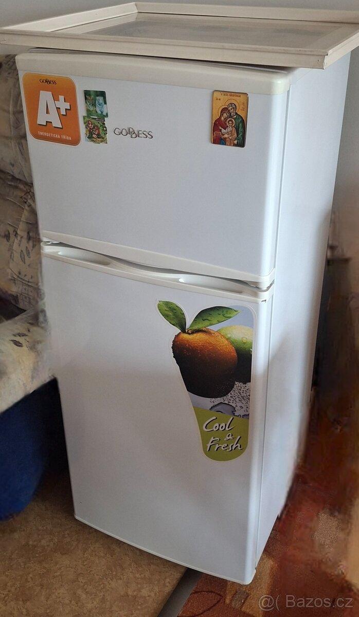 Chladnička - kombinovaná chladnička, volně stojící, mrazák nahoře, energetická třída E, hlučnost 40 db, objem 117 l, mrazák, LED osvětlení, změna otevíraní dveří, vý ...