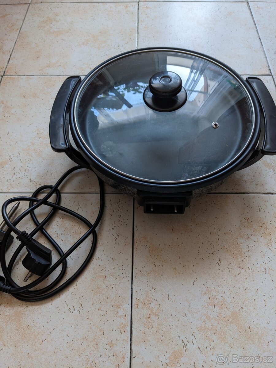 Nabízím tuto pánev podle všech vyobrazení (viz i štítek), nepoužívaná, plně funkční. Průměr 31 cm, hloubka 5 cm, příkon 1400 W. Lze zaslat též poštou nebo přes balíkovnu za úhradu nákladů.
