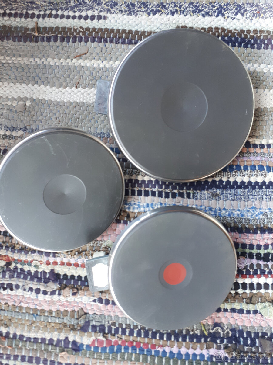 Prodám nové litinové plotýnky na sporák či vařič. Průměr 185 cm 1500 W za 200. Průměr 145 cm 1000 W s bimetalem za 200. Průměr 145 cm 1500 W-rychlovarná za 150.