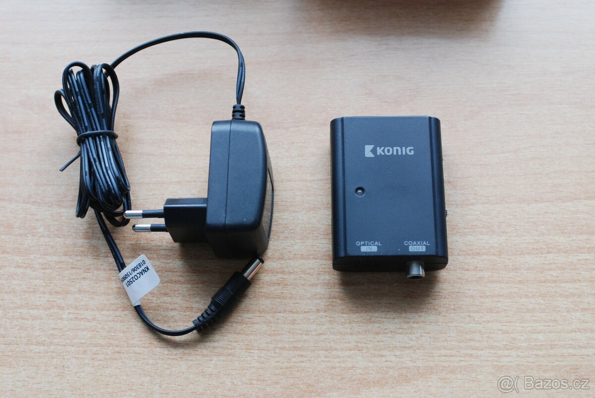 Konvertor převádí Toslink (optický) vstup do digitálního výstupu CINCH (koaxiální). Vhodný pro připojení TV, herní konzole nebo zvukové karty s optickým digitálním výstupem do zesilovače s koaxiálním vstupem.