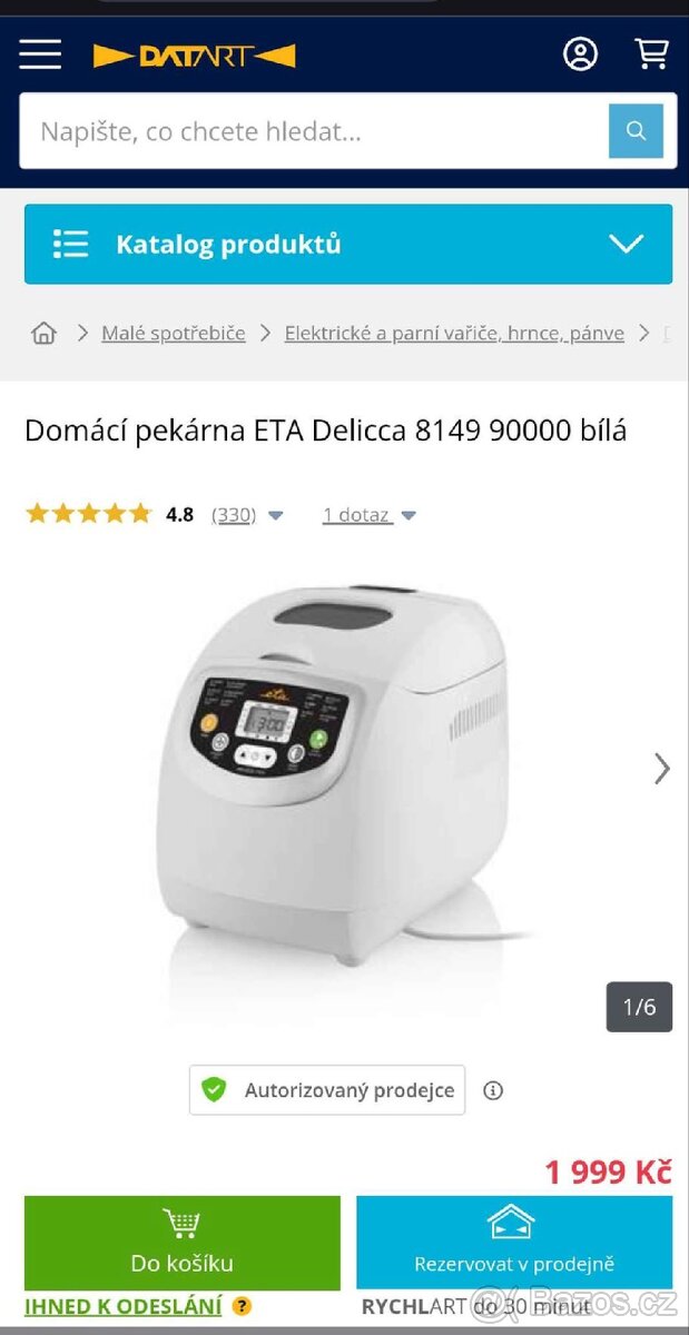 Prodám domácí pekárnu ETA Dellica bílá, použita jednou jen vyzkoušeno, nevhodný dárek. Pouze osobní převzetí