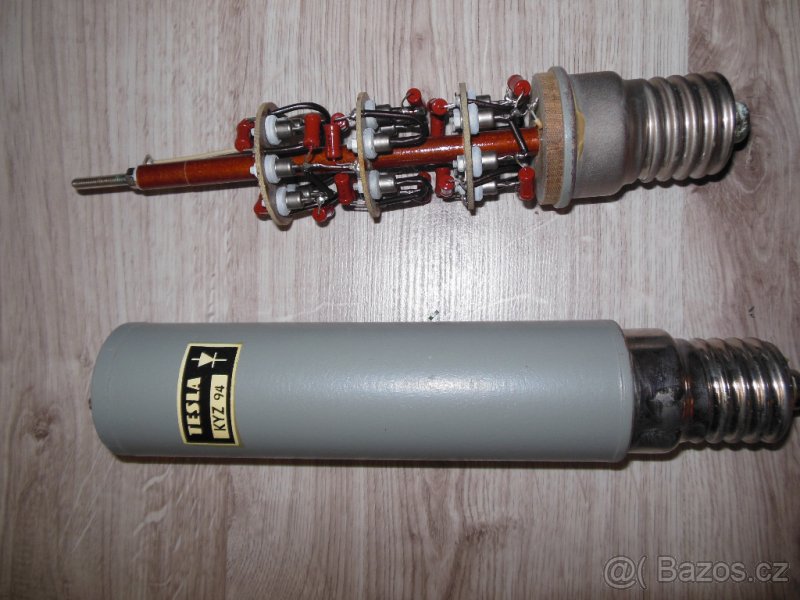 Prodám křemíkový usměrňovač KYZ 94 - 1A / 6000V,I fsm 20A,čidlo RMSV 0001 24V R-B ,ovládací hlavice černé a zelené,objímka žárovky 24V.Cena dohodou.