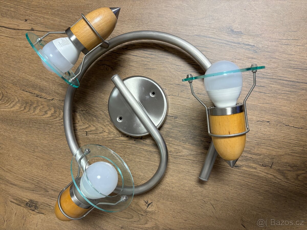 Stropní 3 bodové svítidlo SLEVA - [6.2. 2026]Stropní svítidlo pro 3 žárovky s malou objímkou E14,materiál dřevo,plexi kruh.Původ.cena 890,-Doruč.balíkovnou za 50kč.