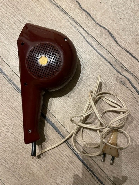 Retro fén - [16.1. 2026]Prodám starý vysoušeč vlasů z dob socialismu, výrobce: Novoborské strojírny, typ 521. Plně funkční - teplý i studený vzduch.