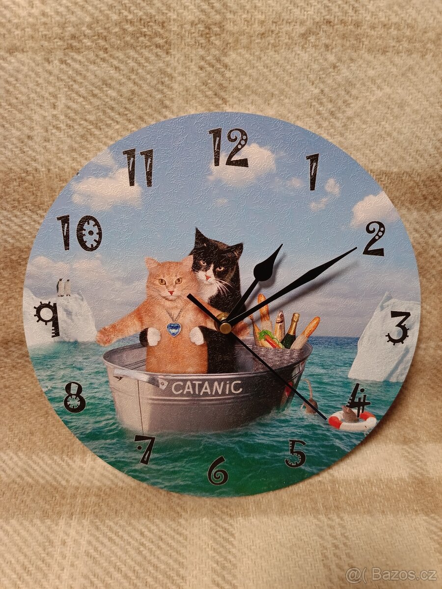 Nabízím unikátní nástěnné hodiny pro milovníky legendárního filmu Titanic a zároveň koček.
