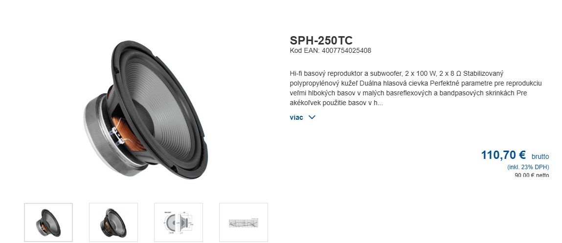 Prodám nový basový reproduktor na subwoofer, Monacor SPH250TC, cena nového repro cca 110 €/ks, má cena 1500 Kč/ks.