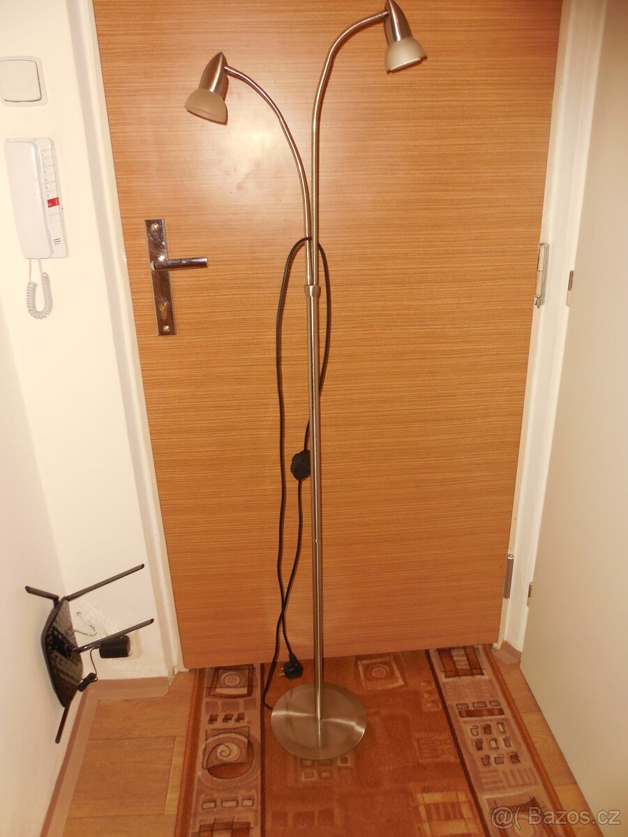 Stojací lampa chromovaná na 2 úsporné žárovky, výška 150 cm, přívodní kabel s vypínačem 2 m. Za odvoz a lahev vína či vodky. Pouze osobní převzetí v Jablonci n.N.