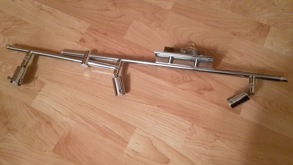 Nabízím stropní svítidlo se dvěma rameny. Jedno rameno natáčecí 29 cm, pevné rameno o délce 55 cm. Při natažení celková délka 67 cm. Žárovka G9 3x50W.