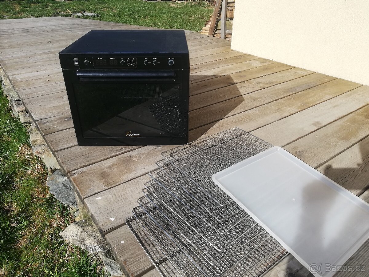 Prodám el. sušičku Sedona SD-S9000, denní a noční (tichý) režim, 2x ventilátor, 9x nerezová mřížka, 1x odkapávací tác, časovač, sušící plocha 1.16 m2, termostat 30-68 st.celzia, možnost sušení polovičního množství surovin. Cena nové 14.990,-. Za 9.000,-Kč. Bruntál 737935274