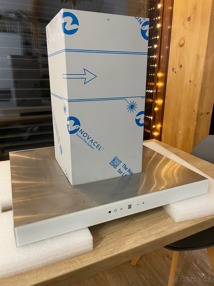 Špičková nerezová digestoř, šíře 60cm s designovým bilým sklem, dotykové ovládání, 4. rychlosti, dálkové ovládání, extremně tichá. Nová nepoužitá, originál zabalená.