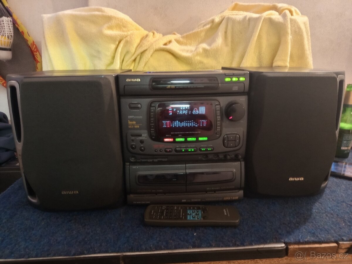 Prodám věž Aiwa NSX 999+reprosoustavy Aiwa sx-n999 MK2, skvělý zvuk, nefunkční tuner,magnetofony přehrávají,CD na výměnu čočky.Cena 1000 kč.Pouze osobní odběr s ukázkou.Melnik.