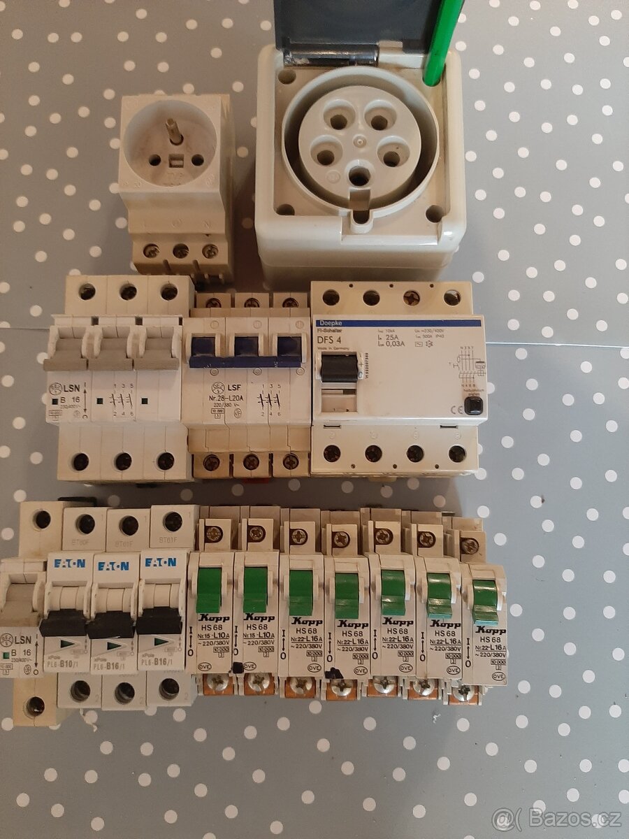 Prodám tyto funkční jističe/proudové chrániče/vypínače a zásuvky. Použité.