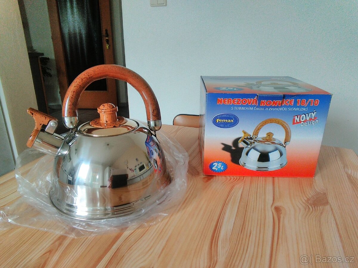 nová nerez konvička s píšťalkou 2,5 l za 280,- Kč a domácí pekárnu ETA (jako nová) za 1.750,- Kč.