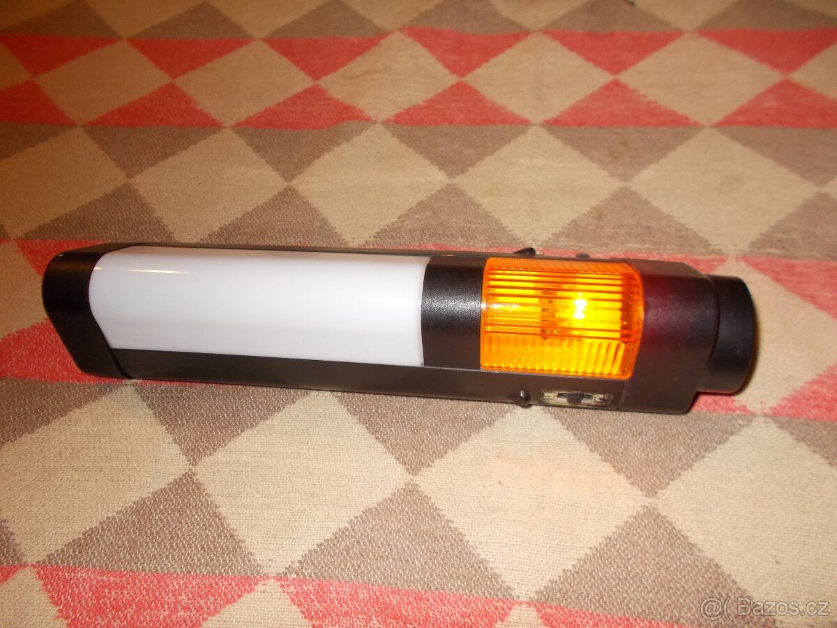 Prodám kombinovanou svítilnu s funkcemi: bodové světlo, rozptýlené světlo a blikající oranžové výstražné světlo. Napájení 6x monočlánek C. K použití v autě, na chatě, v kempu. Cena 80 Kč. Volejte po 17.h
