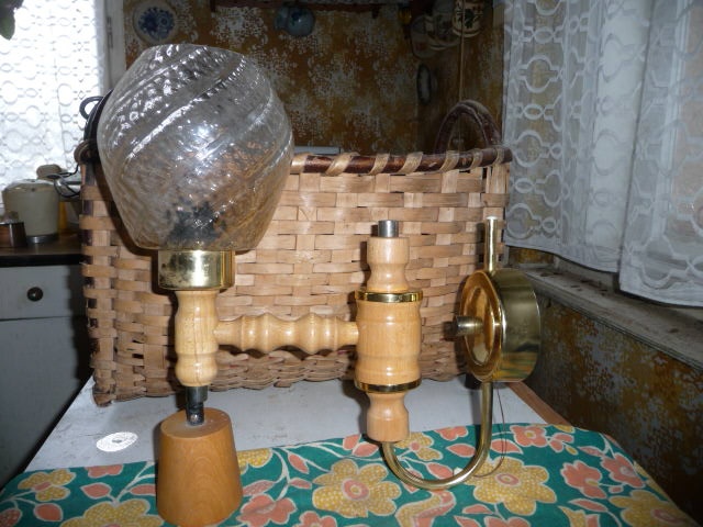 Nabízím dvě nové nepoužité lampy se skleněným stínidlem kombinace mosaz dřevo,obě za 400kč