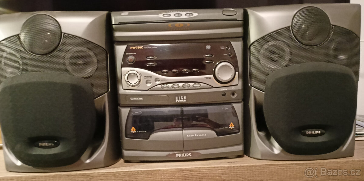 Prodám mini hifi systém PHILIPS, HIGH POWER, výkon 155 W,málo používaný v dobrém stavu, 3 CD changer, tape 1-2, digital tuner, video/DVD