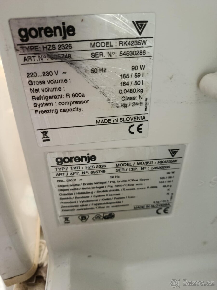 Lednice Gorenje RB3092ANW - [15.2. 2026]Prodám lednici s mrazákem Gorenje, typ RB3092ANW, používána rok, plně funkční. Lednice již není v záruce.