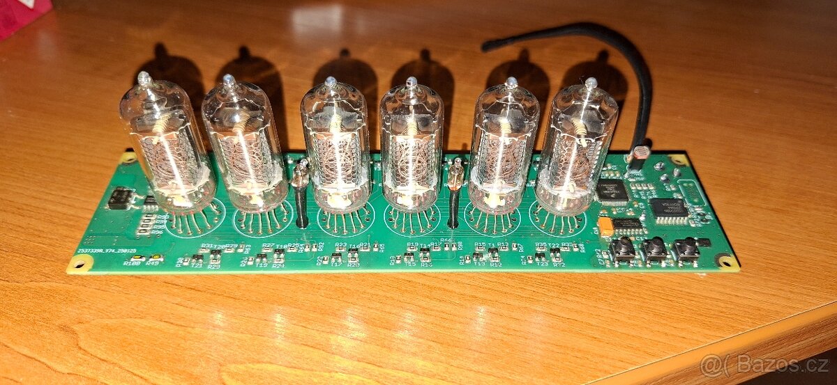 Prodám digitronové hodiny vlastní výroby, zobrazují čas a každou minutu zobrazí okolní teplotu,datum a dny v týdnu, jas regulují podle okolního osvětlení, přepínají automaticky mezi letním a zimním časem. všechny funkce lze nezávisle na sobě vypnout, čas je zálohovaný baterií za pomocí RTC obvodu s teplotně kompenzovaným krystalem (vysoká přesnost). každé 2 minuty jsou všechny číslice protočeny jako prevence otravy katod. napájení adaptérem 12V 1A který je součástí prodeje