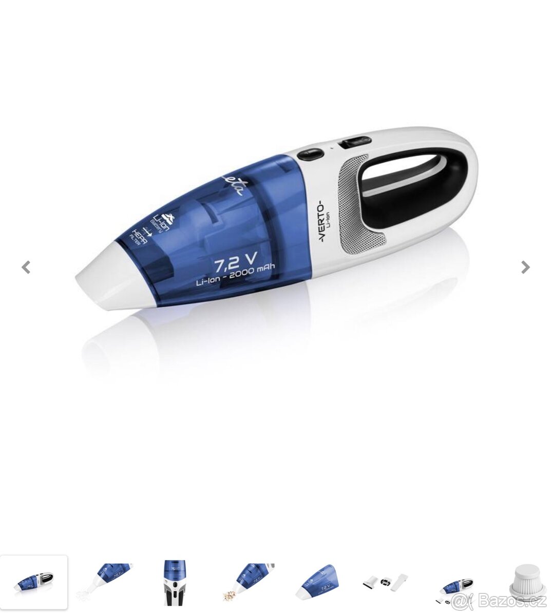 ruční vysavač • suché i mokré vysávání • bezdrátový provoz (15 min) • cyklónové vysávání • omyvatelný HEPA filtr • indikátor dobíjení • kartáčová hubice • štěrbinová hubice • gumová stěrka