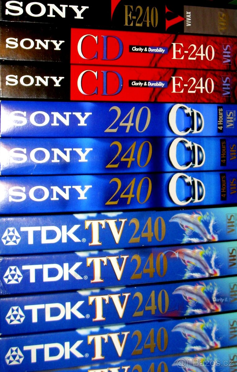 Prodám omezené množství značkových VHS kazet BASF, MAXELL, SONY, TDK a.j.. Převážně E 240. Nabíděte prosím