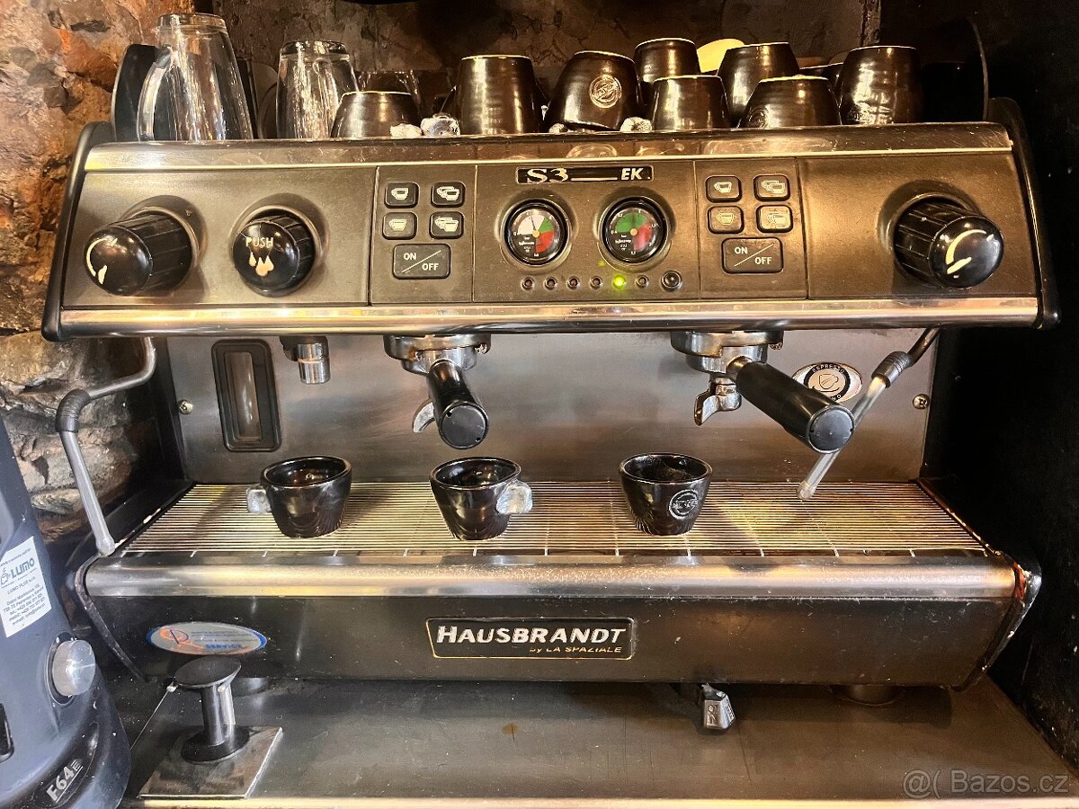 Prodám starší profi dvoupákový kávovar Hausbrandt. Rozměry: šířka 77 cm, výška 56cm, hloubka 56 cm, 230 V. Plně funkční, důvod prodeje je nákup nového. V případě zájmu přidám mlýnek na kávu se zásobníkem.