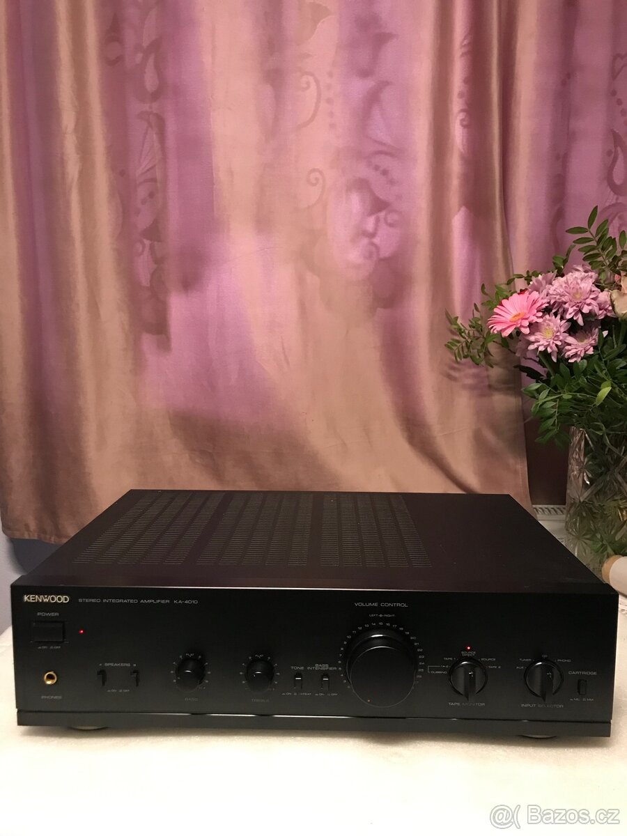 Kenwood KA -4010 , 2x 95 W 4 ohm. Jinak je na 4 , až 8 ohm. 8.8 kg. Rok výroby 1989. Cena 2500 Kč .