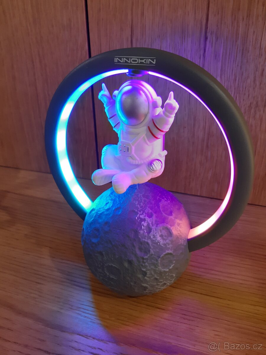 Pomocí technologie magnetické levitace je astronaut zavěšen ve vzduchu. Lankem je ukotven ke kouli, aby se neztratil.