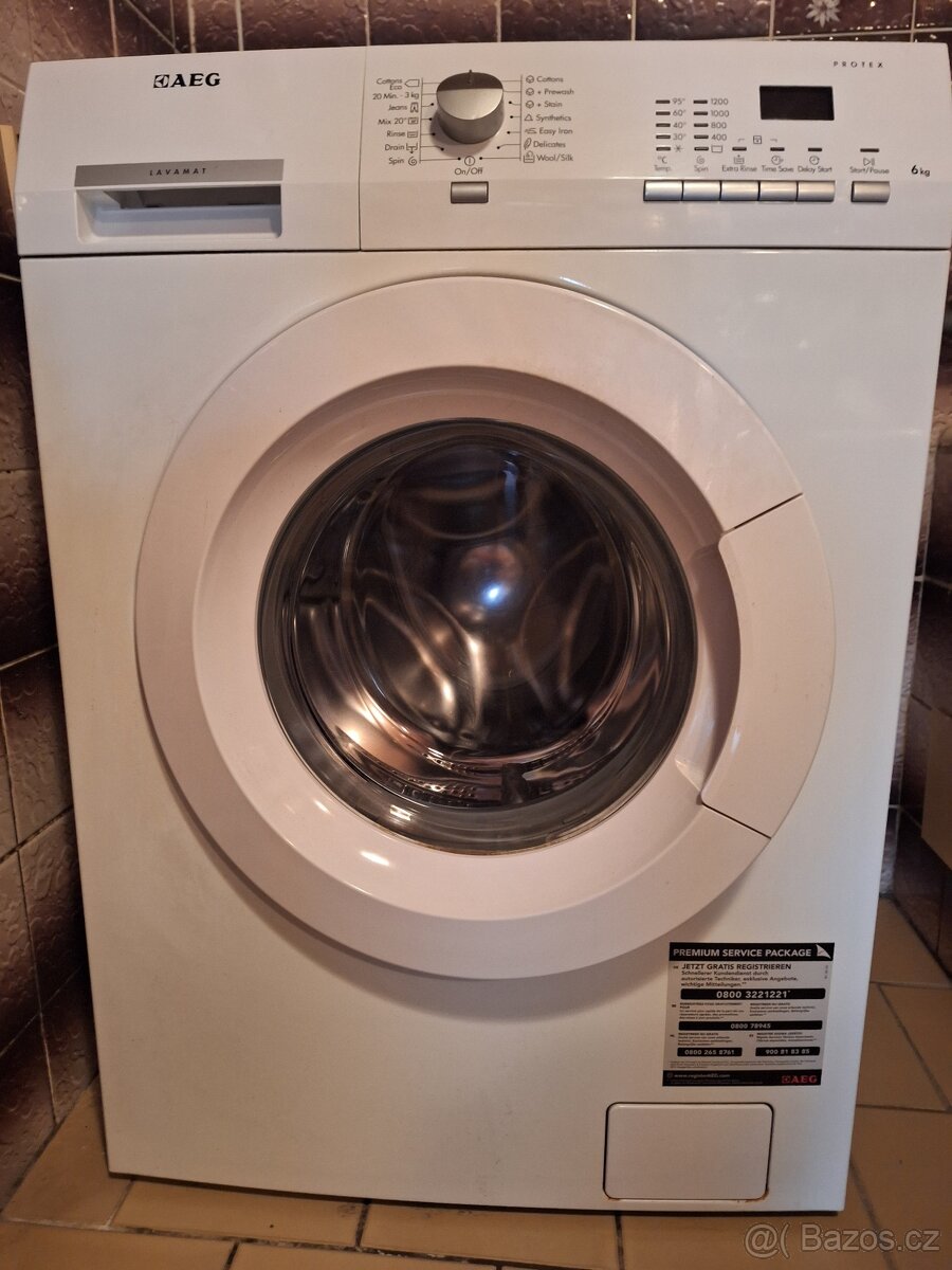 Prodám vrchem plněnou pračku AEG Lavamat 47230 – 6 kg, 1300 - [25.1. 2026]Pračka je v dobrém stavu a normálně funguje. Má pouze drobnou kosmetickou vadu – ovládací tlačítka jsou trochu propadlá dovnitř, ale na stisk reagují zcela normálně a pračku lze bez potíží ovládat.