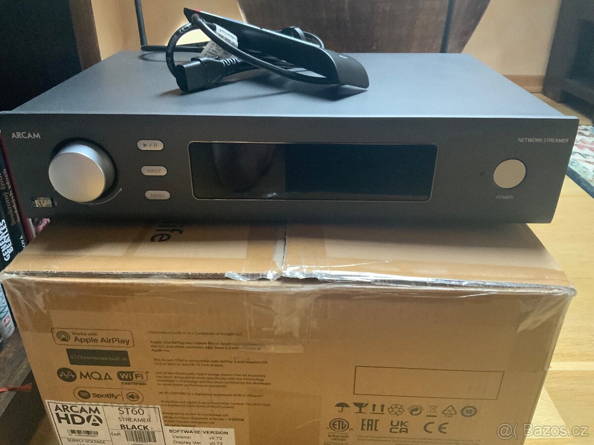 Arcam HDA ST60 umí streamovat přes Google Cast, Airplay 2 i přes UPnP, funguje jako endpoint pro Roon s certifikací Roon Ready a zvládá i TIDAL, Qobuz, Spotify, Napster, Deezer a další.Srdcem a mozkem je čip ES9038K2M (s receiverem AK4113 na digitálních vstupech), pracující v hloubce 32 bit / 192 kHz a podporující jak PCM i DSD128 a MQA. Je tedy univerzálním zařízením se skvělým poměrem výkon/cena.