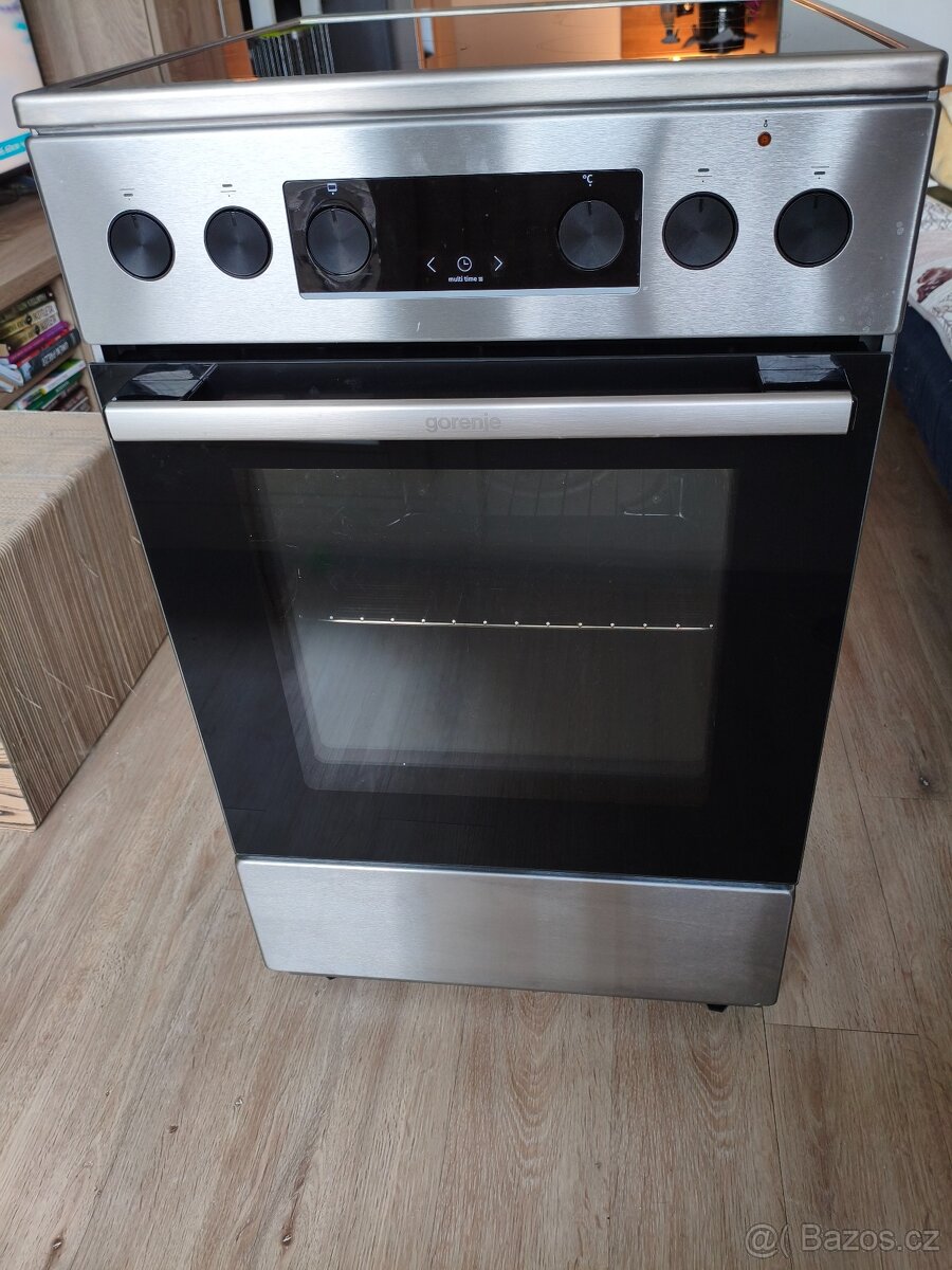 Prodám použitý ale plně funkční sklokeramický sporák Gorenje GECS5C70XPA Advanced. Energetická třída: A, Barva: Nerezová, Typ varné desky: Sklokeramická, Typ trouby: Elektrická, Počet plotýnek: 4, Šířka: 50 cm, Vnitřní objem: 70 l, Rozměry (VxŠxH): 850x500x594 mm, 2x Teleskopický výsuv, Připojení 230 V a 380 V. Spotřebič používány rok, prodáváme z důvodu rekonstrukce za vestavné spotřebiče. Spotřebič nabity pečícími funkcemi. Původní cena 13.990 při rychlém jednání sleva.