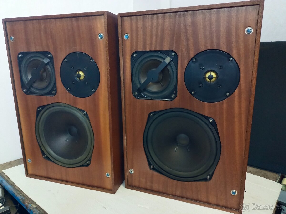 Prodám použité repro soustavy Tesla 1PF067 67. Třípásmové , max výkon 75W, 45-18000Hz. Výrobce Tesla Bratislava.Výška 49cm, váha asi 10kg na kus. Přední textilní mžížky trochu poškrábané od kočky.Vyzkoušené, hrají výborně a čistě.