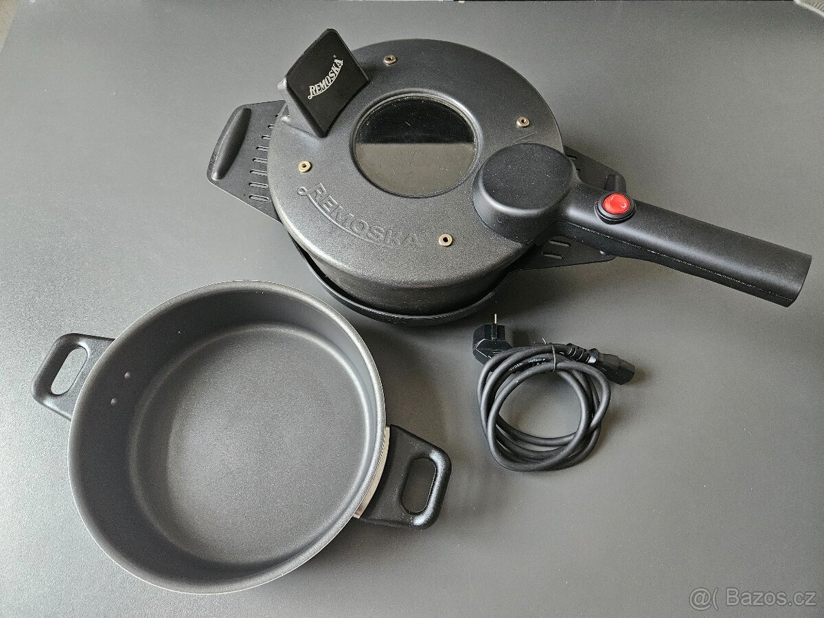 Remoska Prima P31F/02 se standardní + extra jednou nízkou pečící mísou navíc. Včetně servírovacího stojanu.