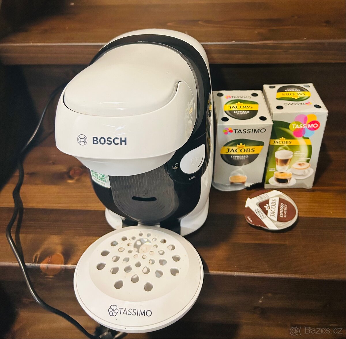 Prodám velice málo používaný kávovar na kapsle zn.Bosch.Perfektní stav.Přidám ke kávovaru 11 kapslí .