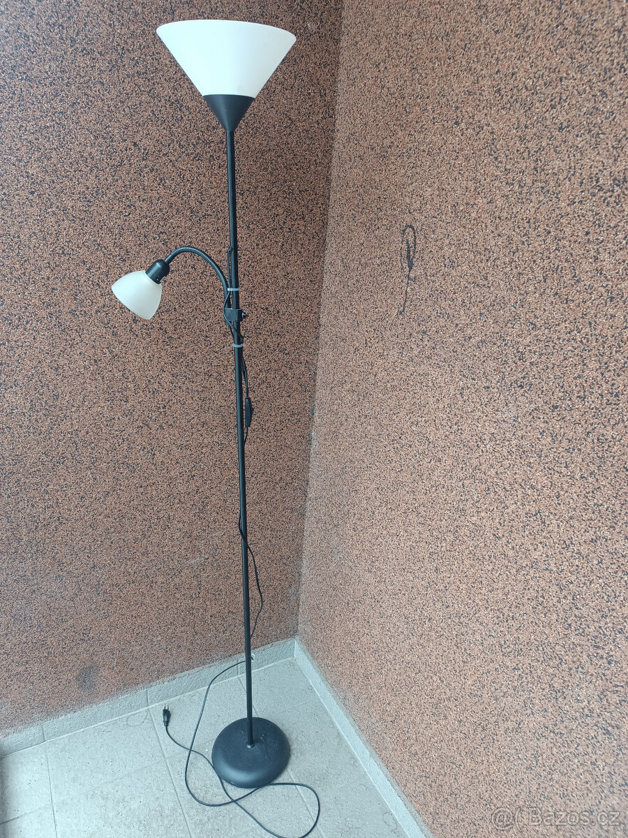 Stojaci lampa - [26.2. 2026]Prodam stojaci lampu, koupeno v Obi. Sviti krasne, jemne zlute svetlo. Zarovka bila. Jedno svetlo lze smerovat na cteni. Usporne zarovky, stmivac.