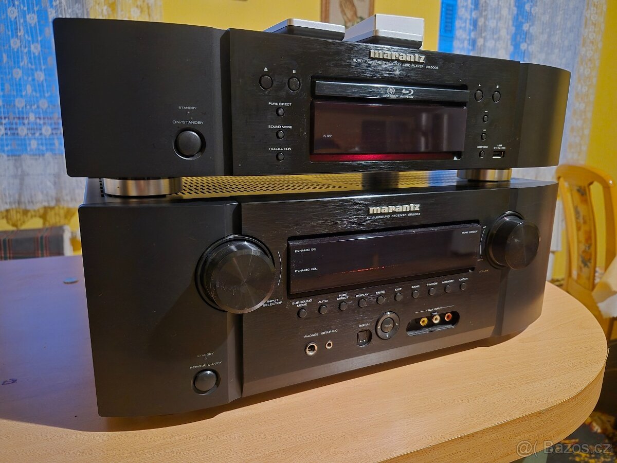 Prodám set Cinema značky Marantz zesilovač SR5004 7,1 který nabízí 90W pro kanál podporuje formáty Dolby pro Logic IIx Dolby Digital DTS a další.Přehrávač blu-ray/ CD Mp3 UD5005 koupeny s USA všechno v perfektním stavu ,bez škrábanců . Součástí je kalibrační mikrofon, 2 ovladače a anténa. Důvodem prodeje je přechod na 7,2 Po špatných zkušenostech preferuji osobní převzetí