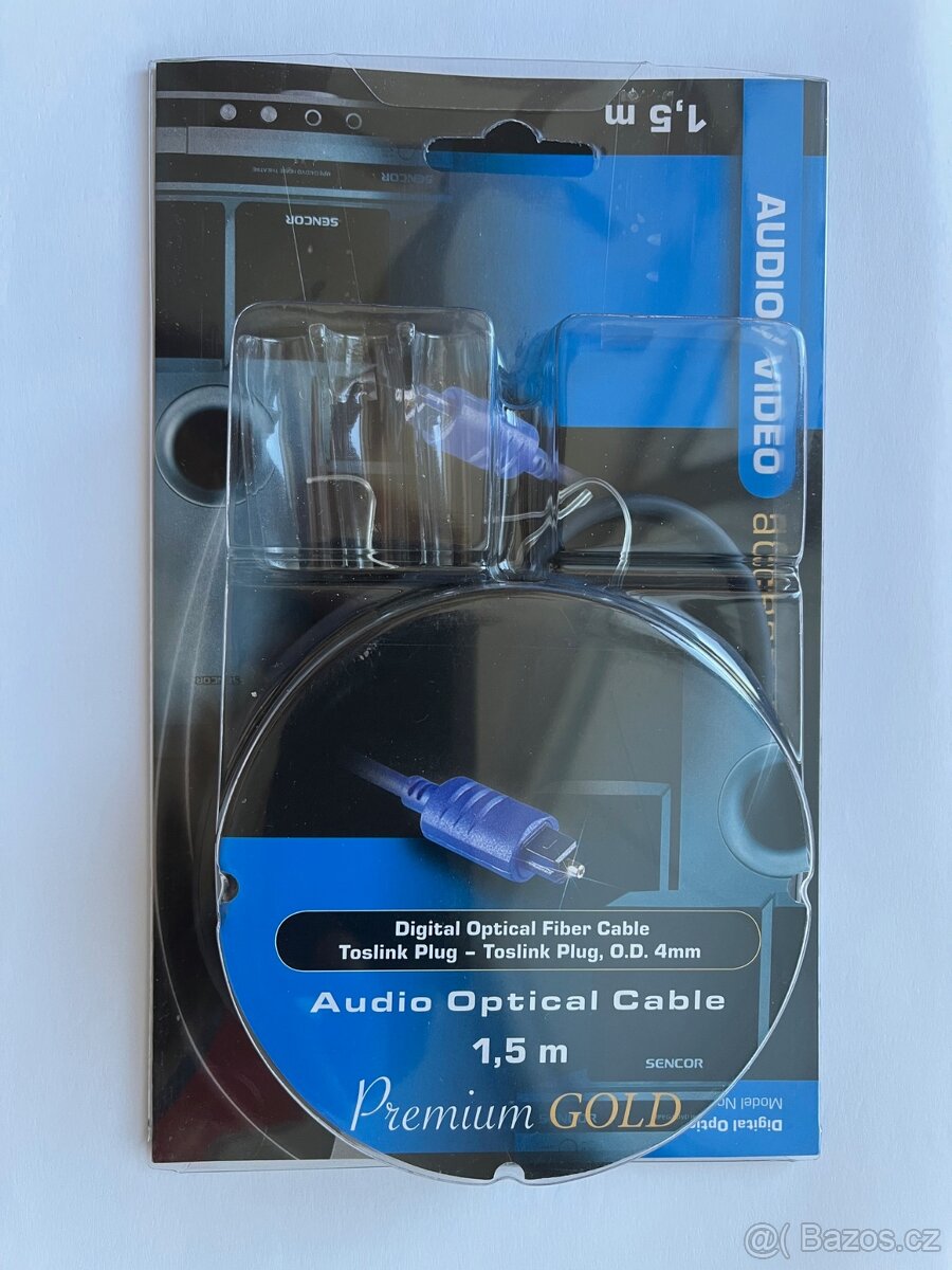 Prodám kvalitní digitální optický kabel Sencor SAV 115-015 Premium Gold, délka 1,5 m, konektory Toslink. Kabel je rozbalený, ale nikdy nepoužitý. Vhodný pro propojení DVD/CD/Blu-ray přehrávačů, TV, konzolí a zesilovačů s optickým audio vstupem/výstupem.