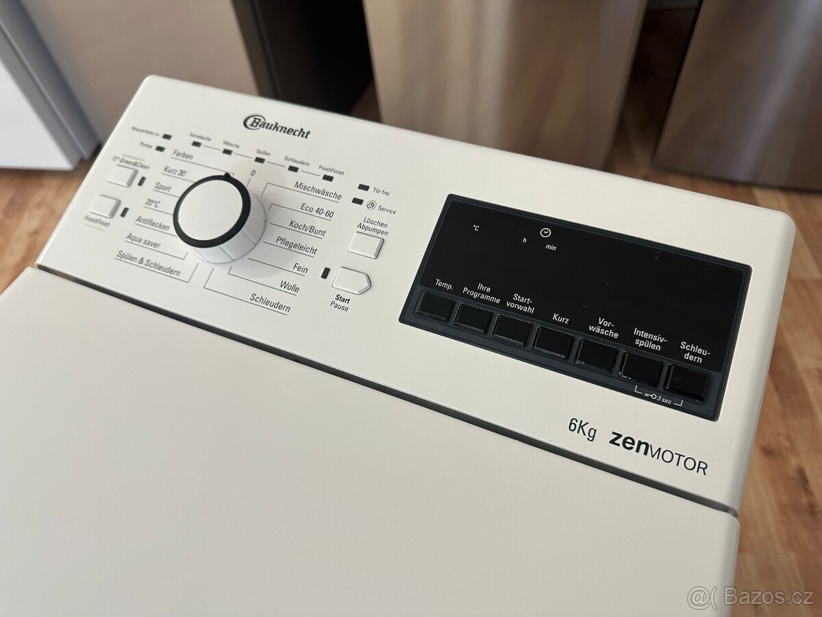 Bauknecht WMT Pro Eco 6ZB pračka s horním plněním / 6 kg / 1200 ot./min., program proti skvrnám / FreshFinish/ZEN technologie/předvolba času startu / SoftOpening/krátké 30'/ 15° Green& Clean [Energetická třída B]