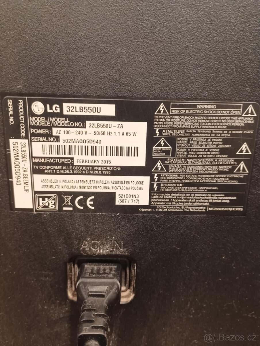 Televize Philips LG 32LD550 - ZC - [23.2. 2026]Televize Philips LG 32LD550 - ZC v dobrem stavu, doprava Brno je možné zdarma.